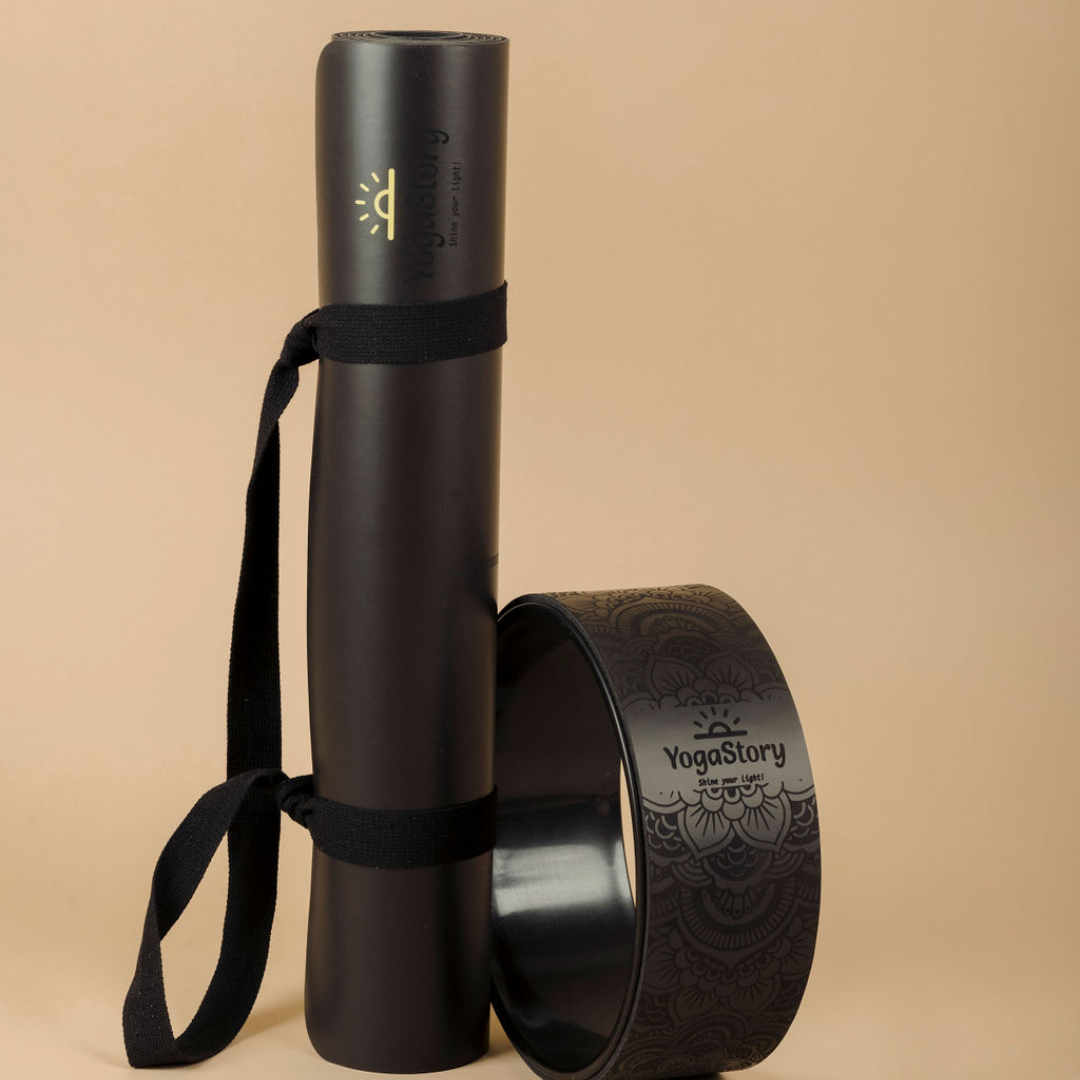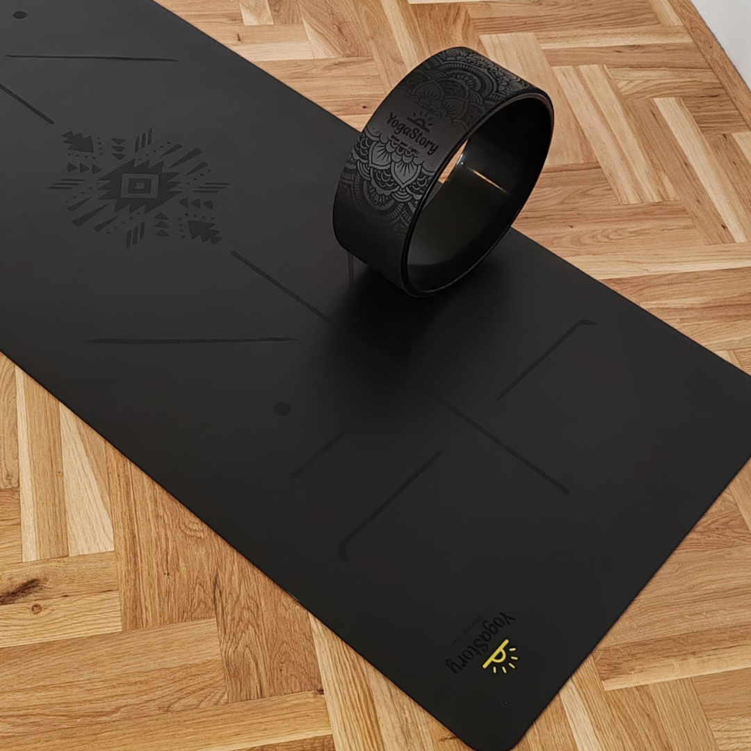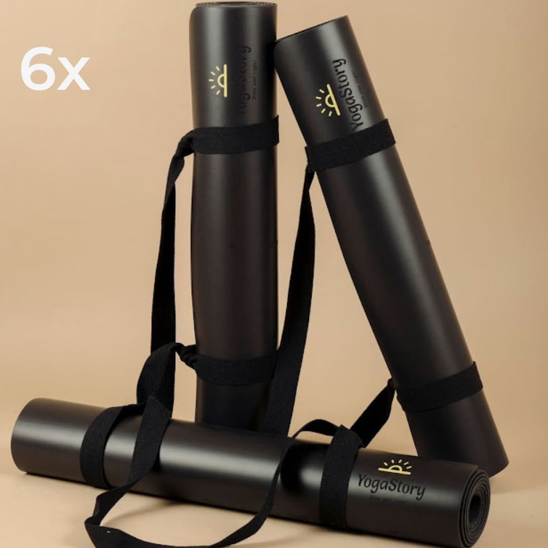 6X Black yoga mat “Alignment lines” (polyurethane + natural rubber)