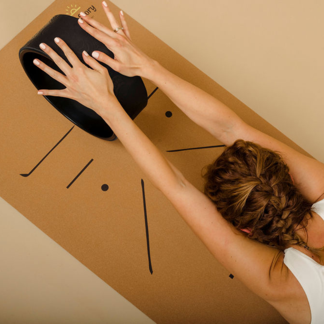 - Deep Muscle Massage: Sit on the floor with the yoga wheel behind you. Using your hands for support, roll back and forth over the wheel to massage the deep muscles of your back and shoulders.
